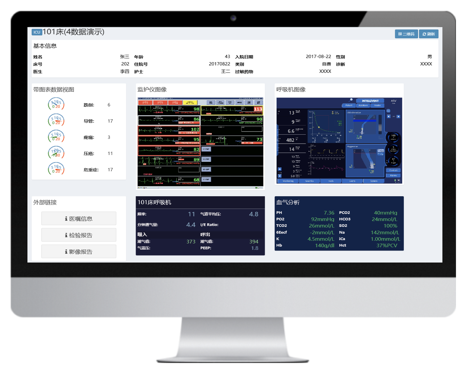 實時呈現(xiàn)病人體征參數(shù)、變化趨勢,診療設備參數(shù),同時接入醫(yī)囑、檢驗結果數(shù)據,一體化呈現(xiàn)存儲和回溯,方便醫(yī)護急救、會診、查房